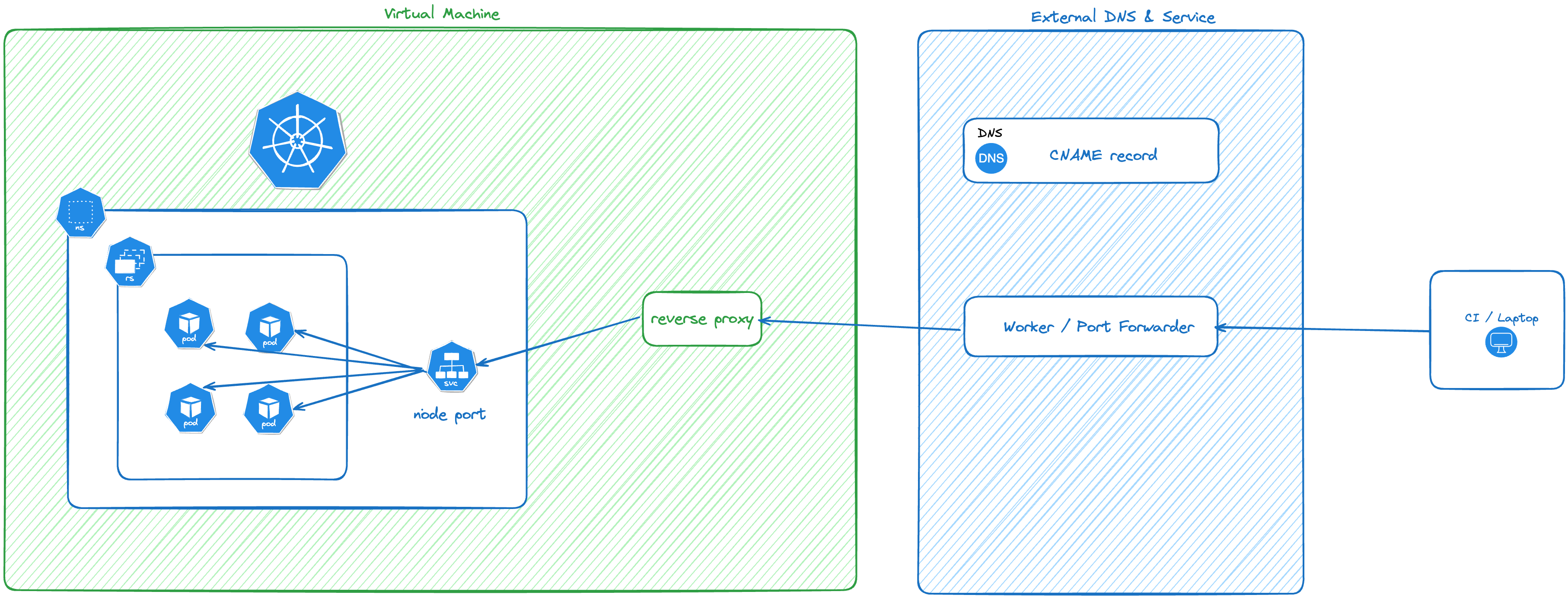 A DNS record and valid TLS cert are created and connected to the specified port.